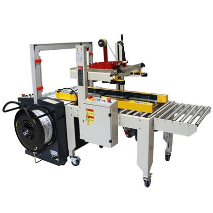 The box sealing and packing machine is an automatic equipment integrating box sealing and packing. It is composed of a full-automatic packer and a box sealing machine. The machine adopts the principle of lengthening the belt of the box sealing machine and uses the driving belt of the box sealing machine to transport the goods to the table of the packer. It not only solves the needs of customers for the overall operation of box sealing and packaging, but also greatly saves production costs for customers. It is an economic and practical automatic packaging equipment, which is mainly suitable for carton packaging, which is economical and fast, It is easy to adjust and can complete the up and down sealing action at one time. It can also be used together with the assembly line. It is widely used in household appliances, textiles, food, department stores, medicine, chemical industry and other industries.
